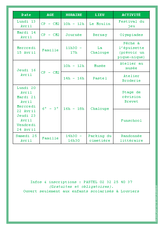 Les inscriptions sont gratuites et obligatoires auprès du centre Pastel.
