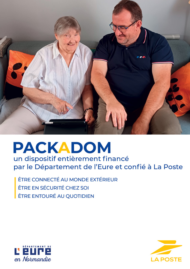 Le Département de l’Eure avec La Poste vous propose de bénéficier gratuitement du PACKADOM* pour vous apporter confort et sérénité au quotidien.