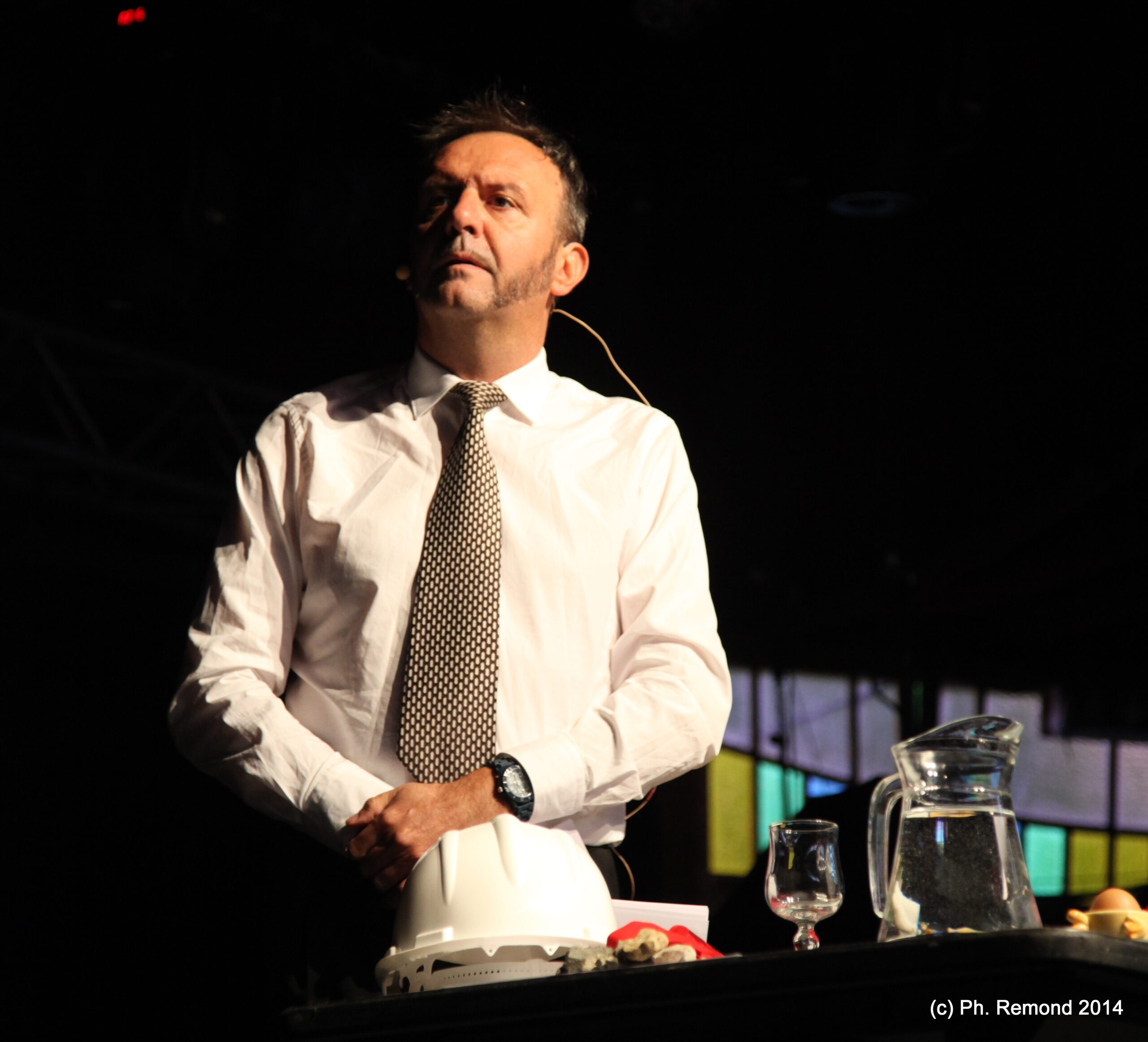 Habile en boniments, philosophe de l’absurde, maître du doublesens, il fait de ce spectacle hors-normes, parfaitement maîtrisé dans la moindre nuance de jeu, un monument de l’humour. Irrésistible !